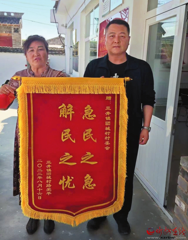 村民路愛(ài)平介紹說(shuō),去年8月9日,岢嵐縣遭遇到了幾十年不遇的特大暴雨侵襲,凌晨4點(diǎn)多,外出辦事的甄繼榮趕回村里,召集村兩委班子成員連夜巡查村民房屋是否有安全隱患,巡查到早上7點(diǎn)時(shí),發(fā)現(xiàn)靠近河道居住的路愛(ài)平和吳貴生兩戶(hù)村民的護(hù)坡有被洪水沖刷的痕跡,存在安全隱患,當(dāng)時(shí)還在下著大雨,村里也沒(méi)有工程機(jī)械,無(wú)奈之下,甄書(shū)記及時(shí)聯(lián)系了駐地部隊(duì)的勤務(wù)站,懇請(qǐng)出動(dòng)一臺(tái)大型挖掘機(jī)救援。經(jīng)過(guò)部隊(duì)官兵3個(gè)小時(shí)奮戰(zhàn),挖出新的排洪渠道,臨時(shí)改變河水流動(dòng)方向,保住了村民的住房,并及時(shí)在兩排房屋旁邊擋上防洪沙袋。洪水過(guò)后,他又積極爭(zhēng)取資金,在鄉(xiāng)政府的支持下,團(tuán)城村修建了200米的護(hù)堤壩,加固了護(hù)坡。事后,村民路愛(ài)平到村委會(huì)送上了錦旗。