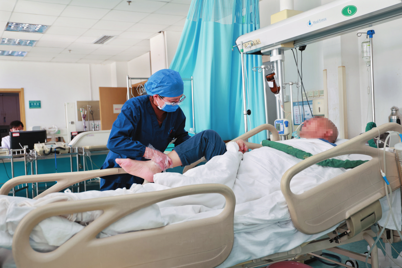 “相比普通病房,ICU護(hù)士的工作要更繁瑣,使用到的醫(yī)療器械要更多,面對的突發(fā)事件也多,要隨時(shí)做好與‘死神’搏斗的準(zhǔn)備?!比挝南家贿吋?xì)心地更換夾在患者手指的氧飽和度儀,避免患者壓到導(dǎo)線,一邊在忙碌間隙告訴記者,“ICU病房不允許家屬陪護(hù),病人的進(jìn)食、翻身、清洗等所有護(hù)理都由護(hù)士獨(dú)立完成,面對這些瑣碎的細(xì)活,護(hù)理工作必須要嚴(yán)謹(jǐn)細(xì)微,不能有絲毫怠慢?!?/p>