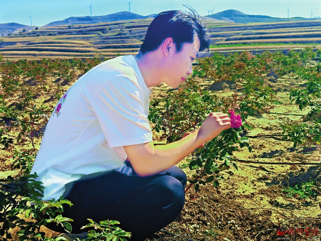 他了解到食用玫瑰有銷路但縣域內(nèi)沒(méi)有種植。在與村“兩委”商議后建議村民種植食用玫瑰。這個(gè)想法得到了鎮(zhèn)黨委的認(rèn)可,先在圪坨莊村試種8畝、八角村試種2畝。試種初期出現(xiàn)了問(wèn)題,田里每日需人工澆灌,看管困難。他又建議村“兩委”鋪設(shè)管道建立滴灌系統(tǒng)和安裝監(jiān)控來(lái)實(shí)現(xiàn)精準(zhǔn)管理。他還與村“兩委”商議,利用光伏資金,設(shè)立工作崗位,從建設(shè)種植到開(kāi)花期日常維護(hù),用工量已達(dá)100余人次,村民的收入也隨著玫瑰花開(kāi)而增加。玫瑰示范園的建成,為農(nóng)產(chǎn)品深加工、發(fā)展鄉(xiāng)村旅游和補(bǔ)鏈月餅產(chǎn)業(yè)奠定了基礎(chǔ)。