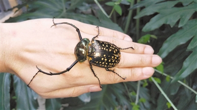 “這種甲蟲的發(fā)現(xiàn)地都是生態(tài)環(huán)境很好的茂密叢林,它的出現(xiàn)可以看做是自然環(huán)境保護(hù)得當(dāng)?shù)囊粋€標(biāo)志?!壁w力說,體形對比之下,格彩臂金龜?shù)捏w形比陽彩臂金龜要小一些。陽彩臂金龜一般的體長可以達(dá)到7厘米,而格彩臂金龜?shù)捏w長只有5厘米多。