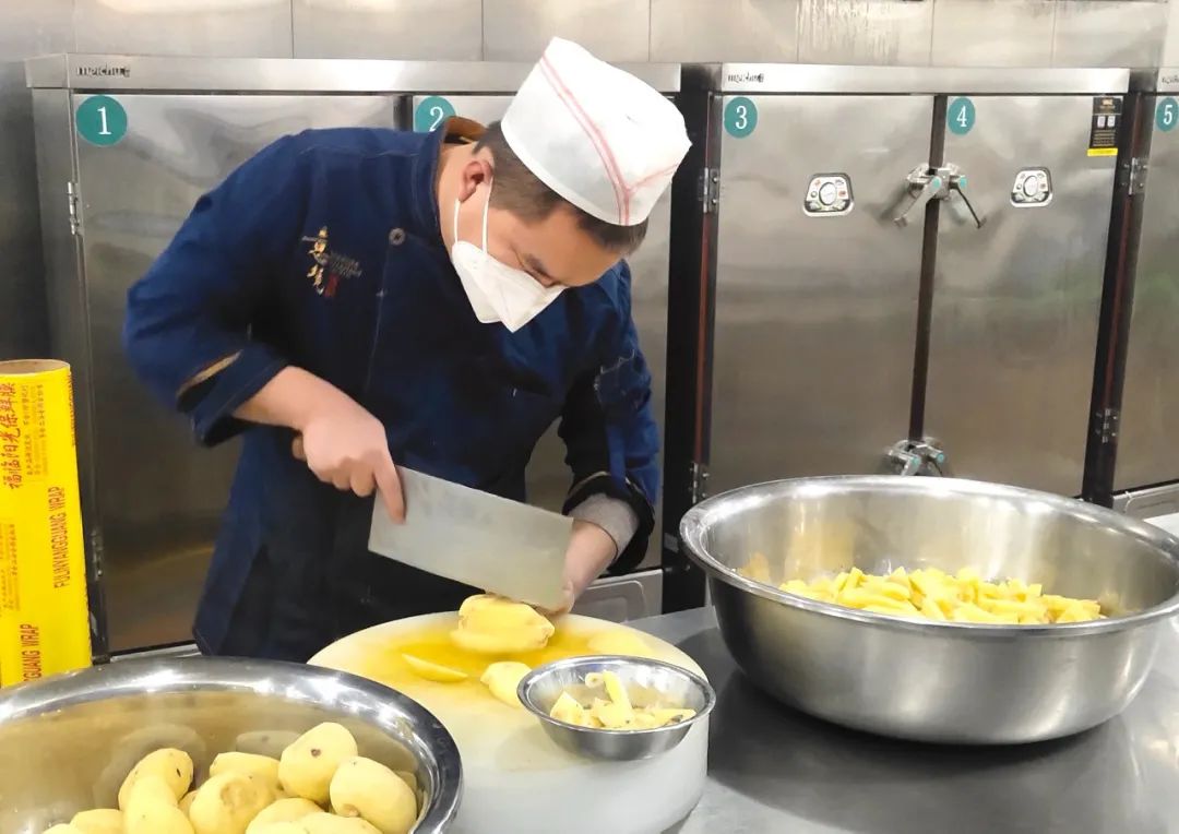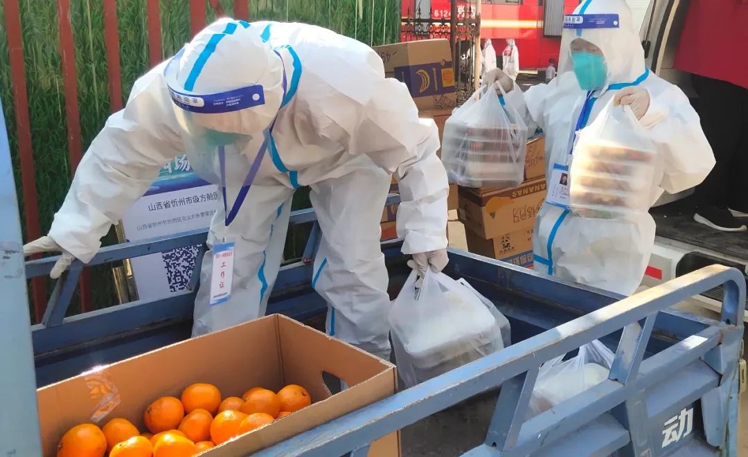 市級(jí)方艙醫(yī)院?jiǎn)⒂靡詠恚鳛榭挂咧髁姷淖o(hù)航者,后勤是這場(chǎng)疫情保衛(wèi)戰(zhàn)的關(guān)鍵一環(huán)。為做好方艙醫(yī)院運(yùn)行后的餐飲、生活用品及工作人員的住宿等后勤保障服務(wù)工作,忻州市級(jí)方艙醫(yī)院后勤保障工作組夜以繼日,辛苦奉獻(xiàn),始終和醫(yī)療團(tuán)隊(duì)從黑夜到黎明奮戰(zhàn)在一線。18日中午12點(diǎn),記者來到忻州市方艙醫(yī)院大門口看到,方艙內(nèi)外保障組工作人員正在交接餐食,一包包盒飯、水果從餐車拿出來放到三輪車上,然后由艙內(nèi)后勤保障組工作人員送到方艙內(nèi)醫(yī)護(hù)人員的手中。