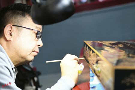 5.山西省工藝美術(shù)大師雷天勇在進行漆器創(chuàng)作。