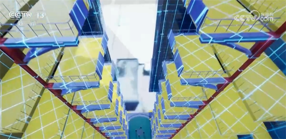 90多米高的廠房一通到頂,中間有十多層工作平臺(tái),方便工作人員進(jìn)行操作。