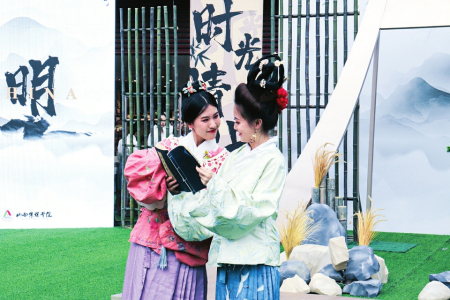 近日,山西傳媒學(xué)院在太原市萬柏林區(qū)萬象城下沉廣場舉辦了“漢服印象”傳統(tǒng)服飾教學(xué)成果展演?;顒蝇F(xiàn)場,35名來自該校的大二學(xué)生,均身著漢、唐、宋、明等朝代的服飾,向現(xiàn)場的觀眾展示了60套獨具特色的原創(chuàng)設(shè)計作品,并進行了沉浸式國風(fēng)走秀教學(xué)成果展演和氣氛熱烈的古詩詞問答互動節(jié)目。