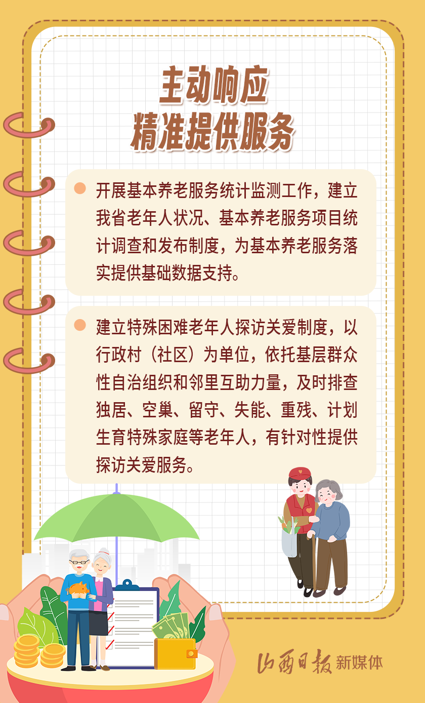 近日,我省出臺《山西省基本養(yǎng)老服務體系建設(shè)實施方案》,以積極應對全省人口老齡化,扎實推進基本養(yǎng)老服務體系建設(shè),切實提高基本養(yǎng)老服務的公平性、可及性,不斷增強老年人的獲得感、幸福感、安全感。