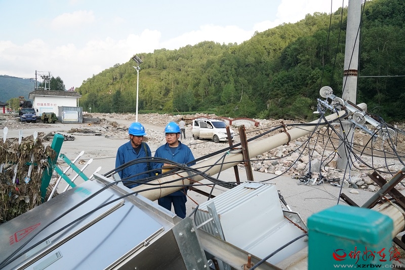 清晨6時(shí),剛剛休整一會(huì)的搶修隊(duì)員動(dòng)身趕往下一個(gè)搶修點(diǎn)。他們與時(shí)間賽跑,奮戰(zhàn)在每一處抗汛救災(zāi)現(xiàn)場(chǎng),為一條條線(xiàn)路恢復(fù)供電,為一戶(hù)戶(hù)居民家中亮起燈火。 全力以赴以為民服務(wù)的真心構(gòu)建“光明港灣” 沒(méi)有從天而降的英雄,只有挺身而出的電網(wǎng)鐵軍。 國(guó)網(wǎng)忻州供電公司始終把群眾光明“置頂”,用自己的“辛苦指數(shù)”換來(lái)受災(zāi)群眾的“電力指數(shù)”,全心全情全力構(gòu)建守護(hù)人民群眾的“光明港灣”。 “盡最大可能降損、用最短時(shí)間復(fù)電”,面對(duì)夜間鏖戰(zhàn)、路況復(fù)雜、風(fēng)雨不停等多重因素考驗(yàn),搶修隊(duì)員始終堅(jiān)守現(xiàn)場(chǎng),通宵達(dá)旦開(kāi)展搶修復(fù)電。餓了,席地而坐,以地為桌,就地啃一塊面包;累了,互相靠著以地為席,休息一會(huì)兒后,繼續(xù)投入緊張的搶修工作,日夜奮戰(zhàn),與時(shí)間賽跑。 8月2日,隨著道路部分恢復(fù)通行,電力工程車(chē)終于開(kāi)進(jìn)通往五臺(tái)駝梁景區(qū)的灣子溝,眼前的一切讓人觸目驚心,近兩年剛通車(chē)的柏油路損毀嚴(yán)重,路外側(cè)的護(hù)欄以擰麻花一般的姿態(tài)被擱淺在河道中間,河道里仍然湍急的水流穿行在巨大的卵石之間,摧毀的大樹(shù)、沖垮的橋梁、傾倒的電桿和混在泥濘中的電線(xiàn)隨處可見(jiàn)。 在黑崖堂村,路邊的超市門(mén)外一片狼藉,地面遍布的巨大卵石和水泥塊,連同護(hù)欄一同倒地的變壓器,都在無(wú)聲訴說(shuō)著兩三日前洪水的可怕。身著藍(lán)色工裝的電力搶修人員的到來(lái)引來(lái)了群眾的圍觀(guān),要送電了嗎?幾名工作人員麻利地操作著,先接線(xiàn)為臨時(shí)搶險(xiǎn)指揮部供電,為盡快恢復(fù)當(dāng)?shù)卣5纳a(chǎn)生活提供支撐,隨后先行修復(fù)部分電力設(shè)備和電纜,并利用應(yīng)急電源車(chē)送電到村口的變臺(tái),再通過(guò)變臺(tái)送往村民家里,保障鄉(xiāng)親們照明等基本用電需求。