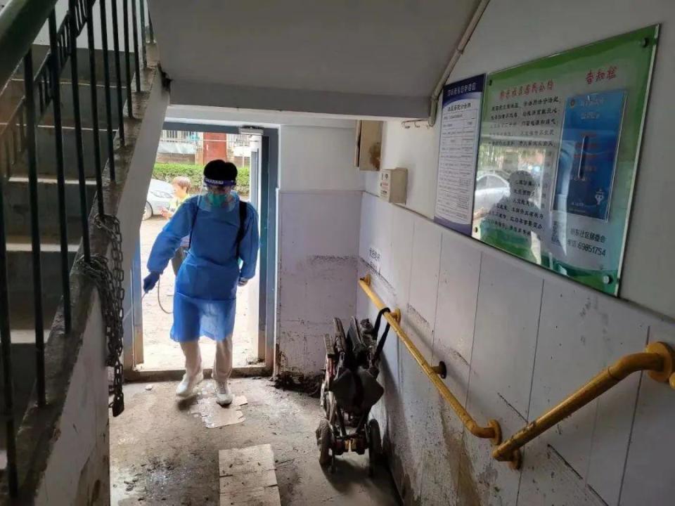 “益行志愿服務(wù)隊從8月4日17點下班后開始組織救災(zāi)工作,到凌晨24點充分準(zhǔn)備完畢??傆嫵鰟?輛汽車,志愿者們對社區(qū)內(nèi)的一樓單元門口、垃圾分類驛站、居民家里、黨群活動中心、居委會物資庫、社區(qū)花園內(nèi)和道路,開展清理淤泥和清洗路面工作?!睆垈惤榻B道。