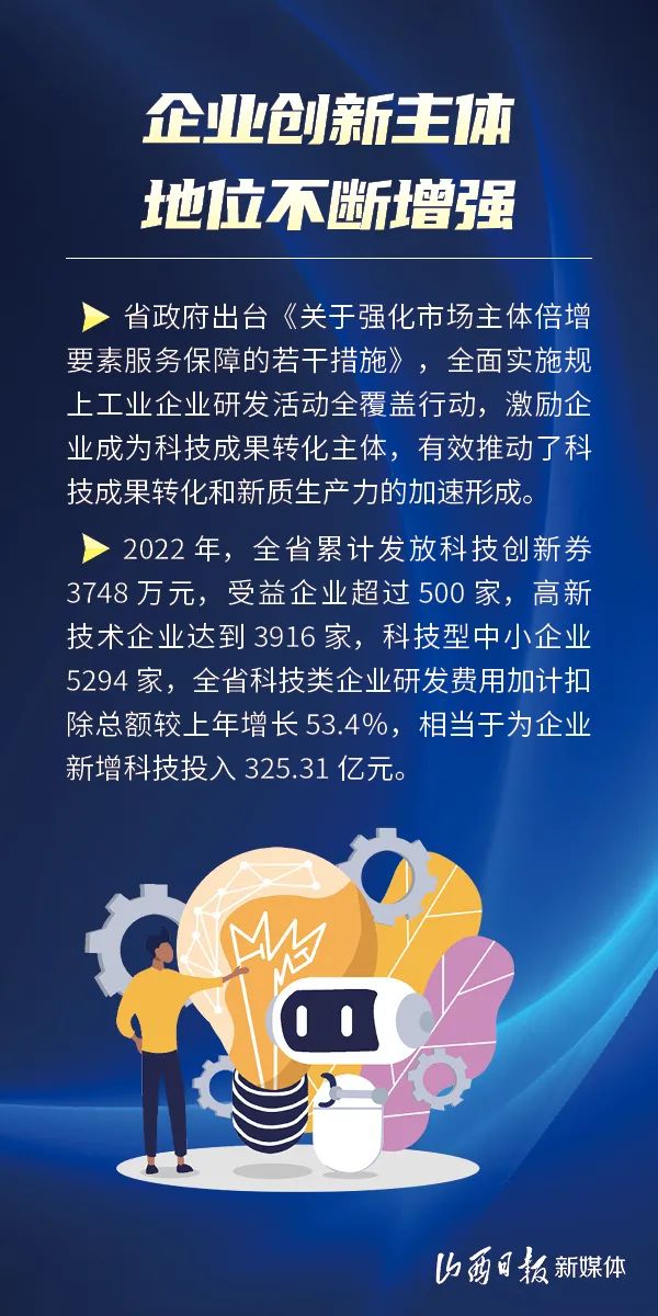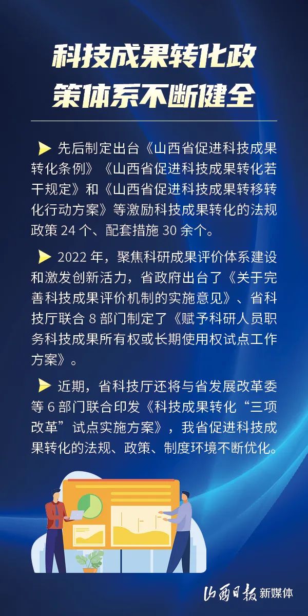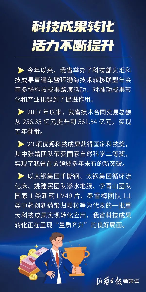 制定出臺(tái)激勵(lì)科技成果轉(zhuǎn)化法規(guī)政策24個(gè)、技術(shù)合同交易總額實(shí)現(xiàn)五年翻番、科技成果轉(zhuǎn)化引導(dǎo)專項(xiàng)五年累計(jì)投入2.21億元……近年來(lái),我省科技成果轉(zhuǎn)化堅(jiān)持新發(fā)展理念,加速科技成果在晉落地轉(zhuǎn)化和產(chǎn)業(yè)化,取得顯著成效。