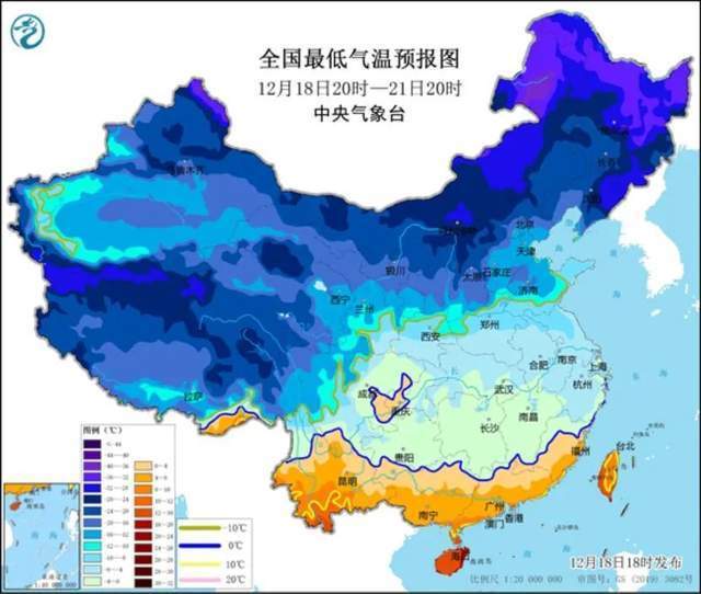 預(yù)計(jì)12月18日08時至21日08時,新疆北部、西北地區(qū)中東部、內(nèi)蒙古、華北地區(qū)、東北地區(qū)、黃淮、江淮、江漢、江南北部、貴州等地部分地區(qū)日最低氣溫較歷史同期偏低5℃以上,最低氣溫0℃線將位于貴州南部至江南北部一帶。中央氣象臺12月18日6時繼續(xù)發(fā)布低溫黃色預(yù)警。