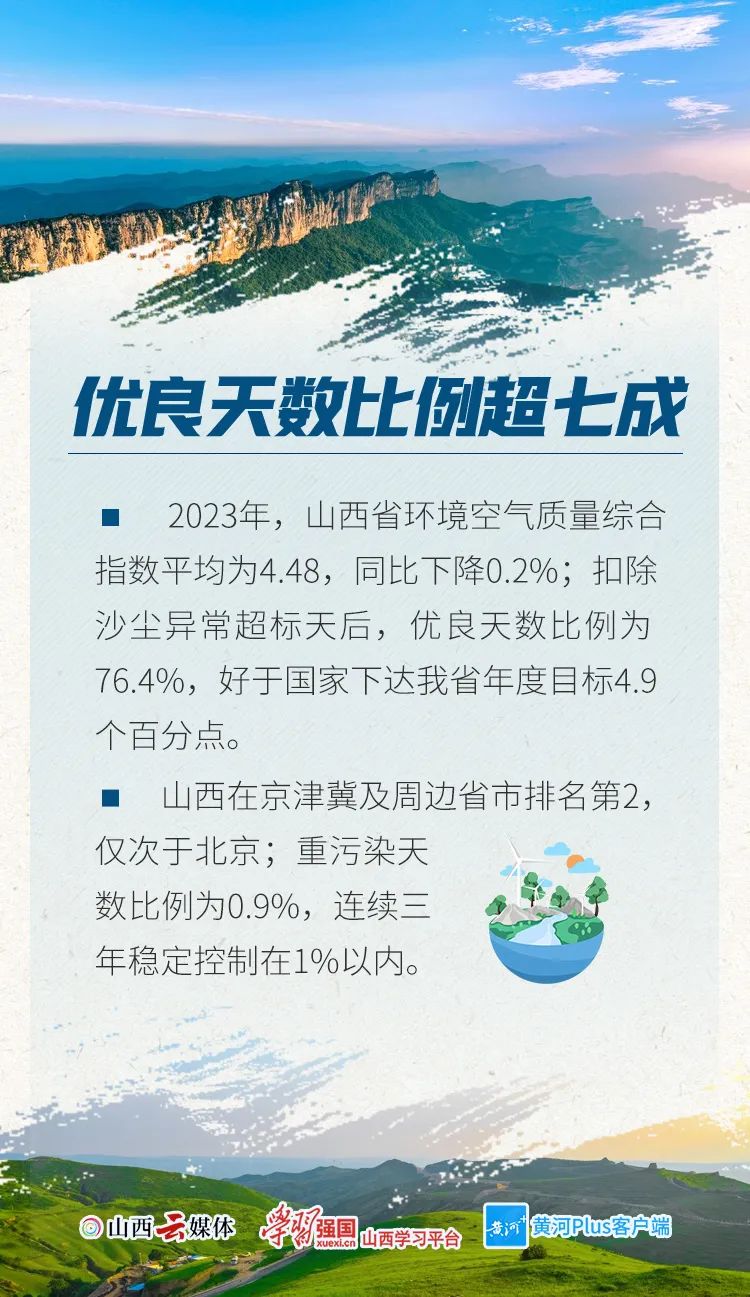 1月29日,山西省生態(tài)環(huán)境廳召開新聞通氣會。會議介紹,2023年,全省生態(tài)環(huán)境質(zhì)量明顯改善,國家下達(dá)的約束性指標(biāo)任務(wù)全部完成。山西省連續(xù)兩年在黨中央國務(wù)院污染防治攻堅戰(zhàn)成效考核中評為優(yōu)秀。一組數(shù)字,讀懂2023年山西省生態(tài)環(huán)境“成績單”。