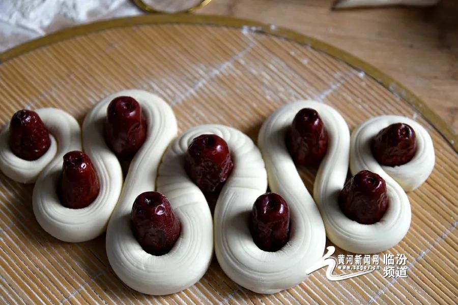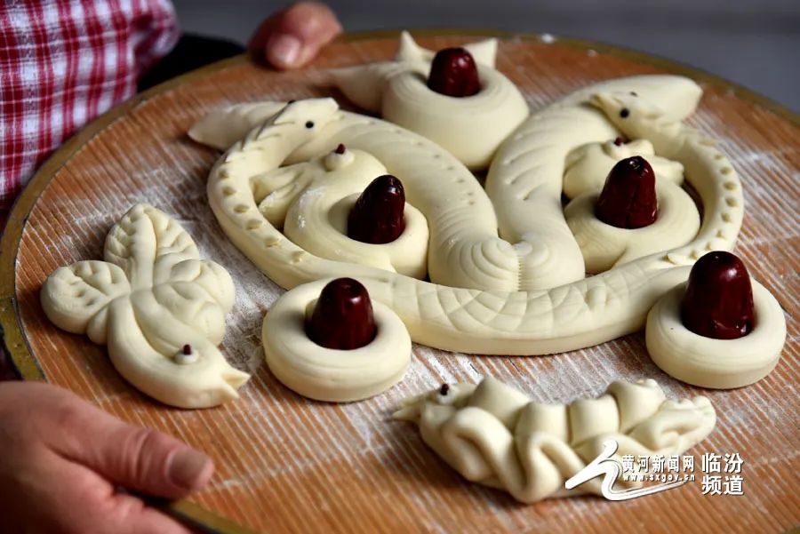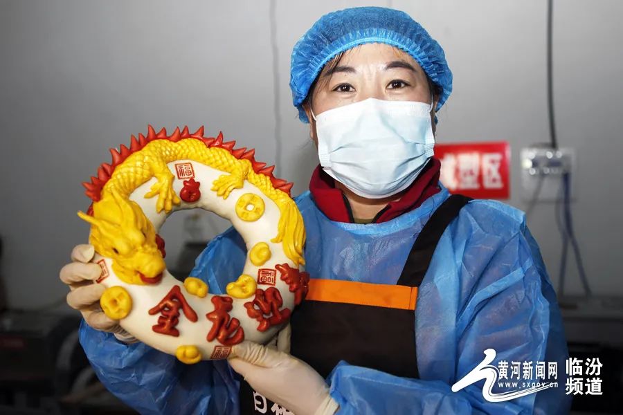 在晉南,蒸花饃是不可缺少的一項(xiàng)年俗。花饃藝人用面粉、果蔬汁、雞蛋和牛奶等食材為原料,巧手捏制出“金龍迎春”“迎春納福”等寓意吉祥的系列花饃,為即將到來的龍年春節(jié)增添了濃濃的年味。