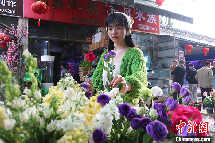 3月23日,安徽省合肥市裕豐花鳥魚蟲市場,“Z世代”女孩詹銀銀正在挑選鮮花,準備擺攤銷售。隨著氣溫回升,鮮花市場迎來一波熱度。記者近日在采訪中了解到,中國年輕人正在通過各種鮮花消費場景把春天“帶回家”,鮮花消費已突破固有的節(jié)日專屬儀式感,成為年輕人日?!皭偧骸钡闹匾绞?。中新社記者 張強 攝