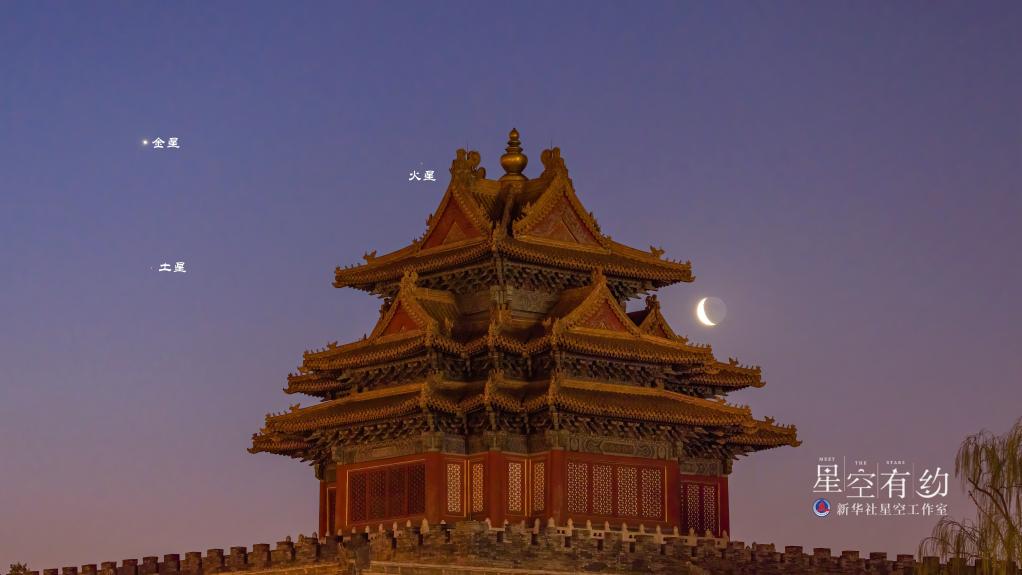 北京星空攝影愛(ài)好者吳魯萍2022年3月28日清晨在北京拍攝的金星、火星、土星與殘?jiān)?。(本人供圖) 火星是太陽(yáng)系中與地球最為相似的行星,也是一顆承載人類(lèi)最多夢(mèng)想的星球。本月,火星日出前可見(jiàn)于東偏南低空,大約于凌晨4至5時(shí)升起,越往后升起時(shí)間越早;土星是太陽(yáng)系中僅次于木星的第二大行星,是一顆氣態(tài)行星。本月,土星可見(jiàn)于東南方附近低空,大約于凌晨5時(shí)后升起,越往后升起時(shí)間也越早。
