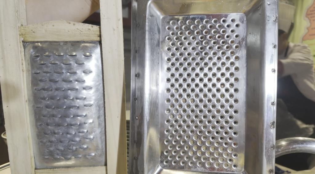 山西人家中大多都有不止一種做面的工具。擦床、抿床、饸饹床、削面用的刀片、甚至普通的剪刀、筷子,都是可用來(lái)做面的工具,每一種工具在大廚們的手中都可以被“玩”出多種花樣。用擦床來(lái)做紅面擦尖、“炒撥爛子”,用抿床來(lái)做豆面抿尖、抿八股,用剪刀剪成“剪刀面”,用筷子剔出“剔尖”、戳出“酒窩面”。