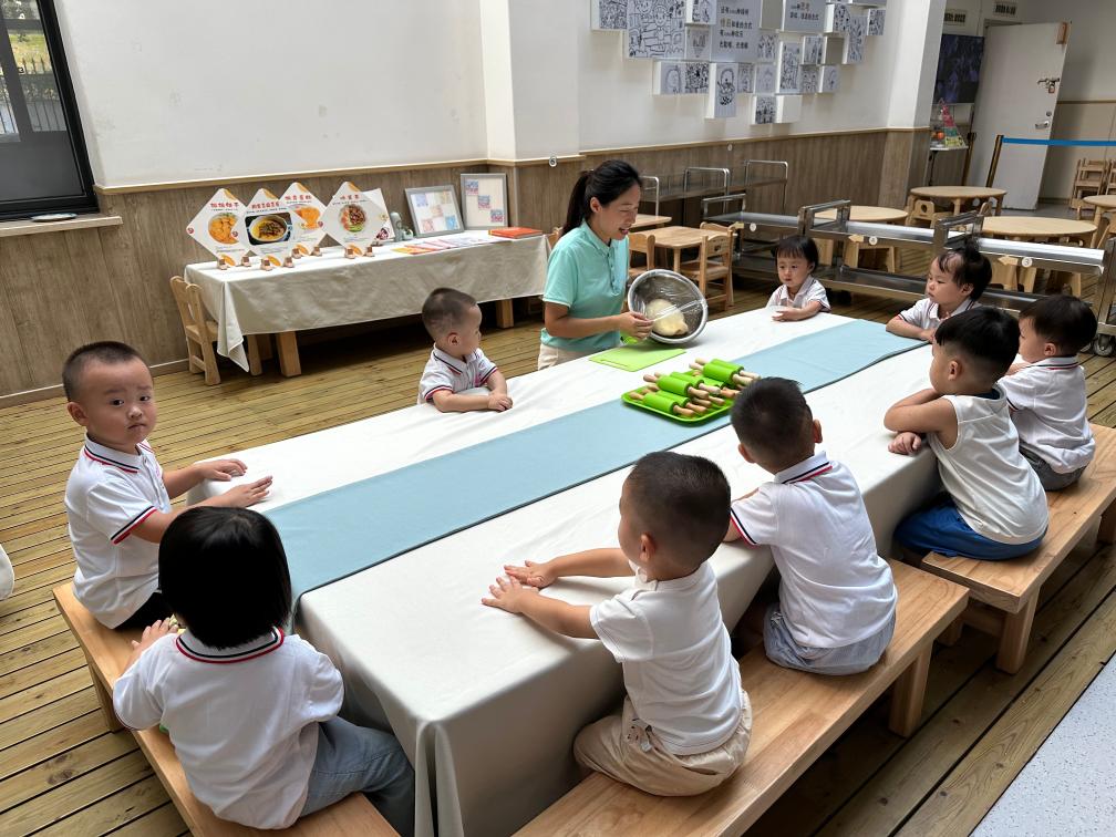 “小手伸出來,我們一起捏面團!”走進重慶市萬州區(qū)雞公嶺玉龍幼兒園,一群2歲左右的小朋友們圍坐桌前,在保育員的帶領(lǐng)下體驗捏面團。