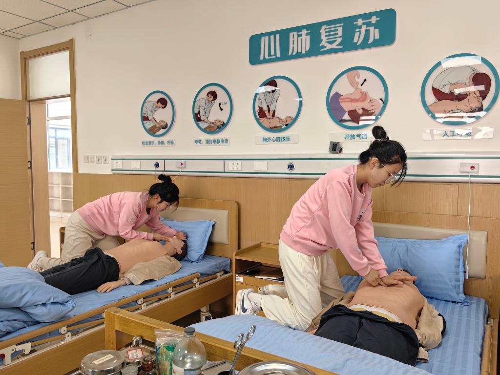 2024年9月25日,山東女子學院養(yǎng)老服務(wù)管理專業(yè)學生在練習心肺復(fù)蘇。新華社記者張力元 攝