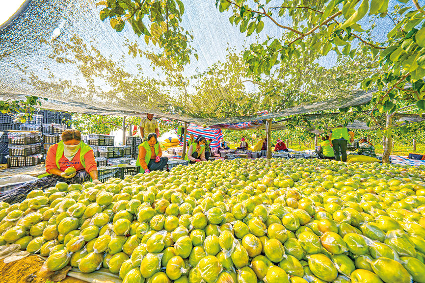 上留村玉露香梨豐收?qǐng)鼍?。亞明攝