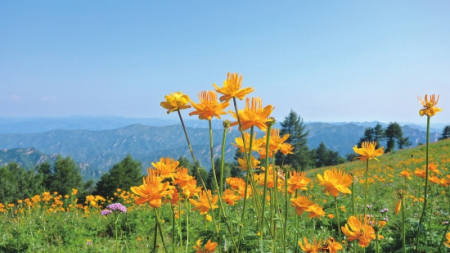 毛茛科金蓮花屬多年生草本植物,有“旱地蓮”“金芙蓉”之稱。不僅具有極高觀賞價值,還可入藥。每年盛夏,駝梁等地的金蓮花連片綻放,是五臺山標(biāo)志性生態(tài)景觀。