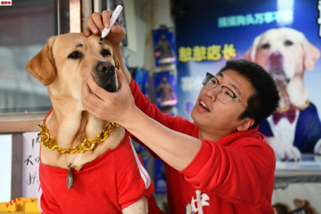 3. 為 了 讓“憨憨”在直播鏡頭里更加醒目,店主李旭戈為它畫(huà)上了一對(duì)濃眉。