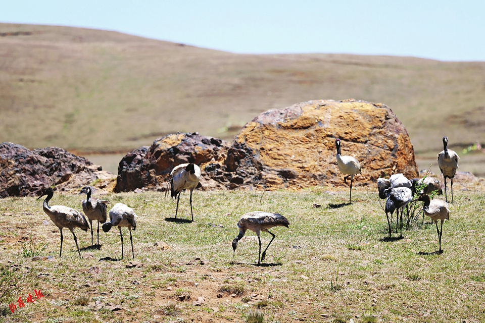 黑頸鶴是國家一級(jí)重點(diǎn)保護(hù)野生動(dòng)物,也是國際公認(rèn)的珍稀瀕危動(dòng)物,被稱為“鳥類大熊貓”。圖為5月3日在云南大山包黑頸鶴國家級(jí)自然保護(hù)區(qū)拍攝的黑頸鶴。