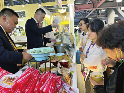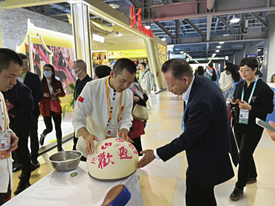 “此次參會(huì),山西會(huì)務(wù)集團(tuán)特別準(zhǔn)備了近年推陳出新、改良工藝的美食新品,希望以美食為載體,以文化為橋梁,讓更多人了解山西、走進(jìn)山西、愛上山西、投資山西?!蓖醮喝A說,“從連續(xù)幾天觀眾的反饋來看,山西刀削面、莜面栲栳栳最受大家歡迎,每天都有人排長隊(duì)品嘗,可以說供不應(yīng)求。此外,酥脆香甜的原平鍋盔、用石子炒制的石頭餅、精心烘焙的黃花餅、經(jīng)典小吃柳林碗托等都是觀眾愛吃的‘爆款’,再配合精彩的面食表演,來往客商連連點(diǎn)贊,直呼好吃好看。”