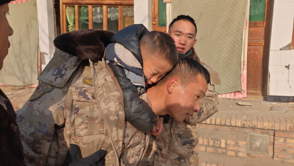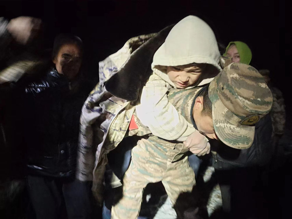 ↑ 12月19日,西部戰(zhàn)區(qū)第76集團(tuán)軍某旅官兵在甘肅省臨夏回族自治州積石山縣大河家鎮(zhèn)陳家小學(xué)展開救援。新華社發(fā)(馮彥榮攝)