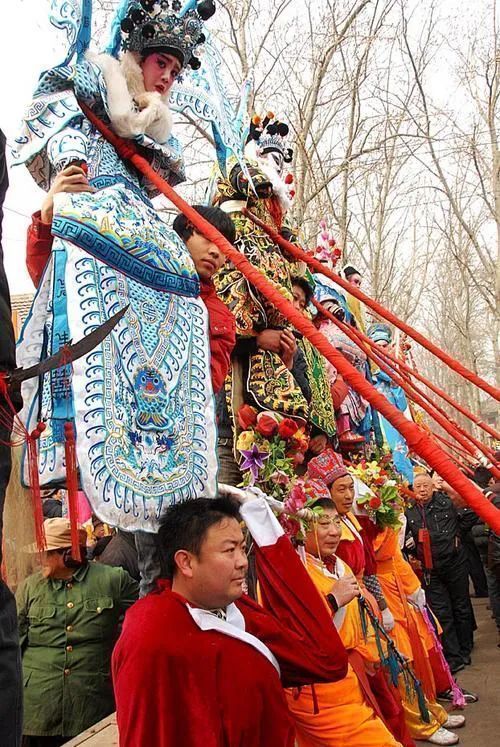 在有些地區(qū),“閣”甚至被搭成了一個“戲臺”般的樣子,除去人物還有布景,能使人一眼就看出“閣”上的故事。抬閣的壯漢也增加到八名一組,大家需要在行走中保持步調(diào)一致的同時,大力顛簸,技術(shù)含量極高。這項表演至今都是各地春節(jié)社火表演中壓軸的重頭戲。