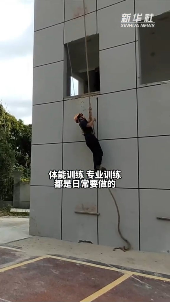整理內(nèi)務(wù)、體能訓(xùn)練、專業(yè)訓(xùn)練都是日常要做的,穿著40多斤重的裝備,身手十分的嫻熟。拋擲水帶、連接分水器、架設(shè)消防梯、水槍連接水帶這些動作行云流水,絲毫不拖沓。