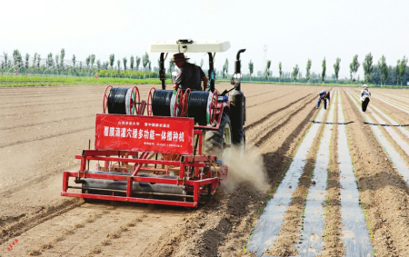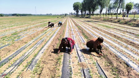 5月28日,在晉中國家農(nóng)高區(qū)、航天育種試驗田,技術(shù)團隊正在播種第二批次上過太空的種子——藜麥。半個月前首批播種的高粱、玉米、谷子、旱稻均已出苗,目前長勢良好。