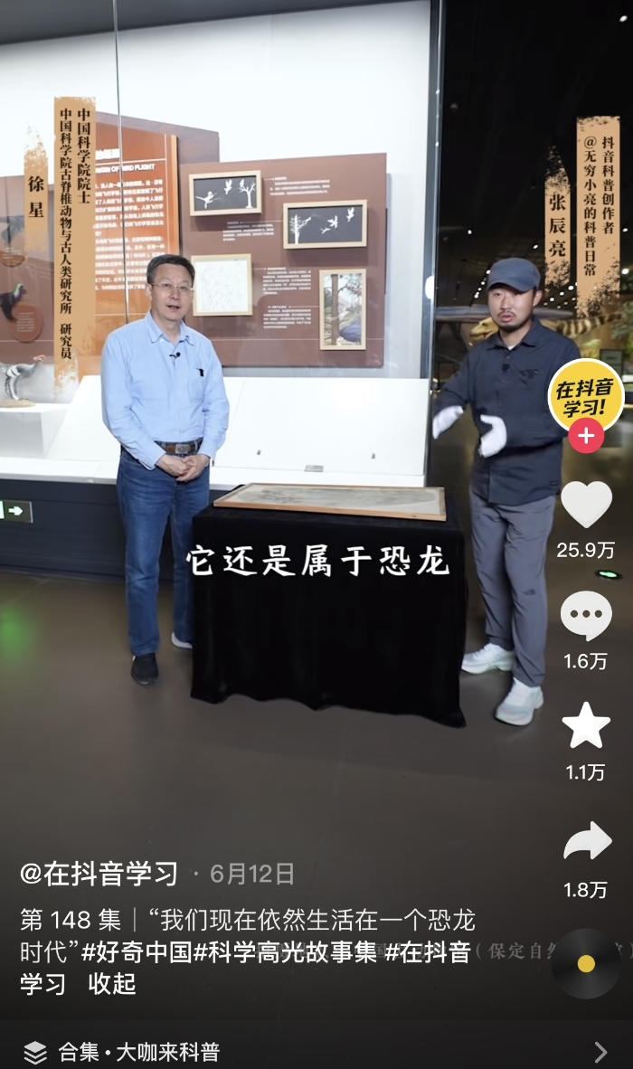 前不久,中國科學(xué)院院士徐星和《博物》雜志副主編、《中國國家地理》融媒體中心主任“無窮小亮”,帶著600多萬網(wǎng)友“云逛”中國古動(dòng)物館(保定自然博物館),那寓教于“逛”的科普形式、極具網(wǎng)感的科普語言,就讓那些古生物知識(shí)從課本里鉆了出來,變得易懂可感。