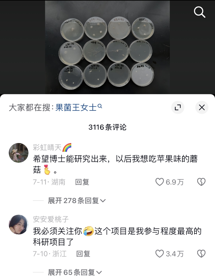 其次,他們“網(wǎng)友有疑問,科普來解惑”的科普答疑方式很活。趙琪老師和許博士在收到“果菌王”后,會(huì)實(shí)時(shí)更新研究最新進(jìn)展,硬生生地把科普變成了“連續(xù)劇”。
