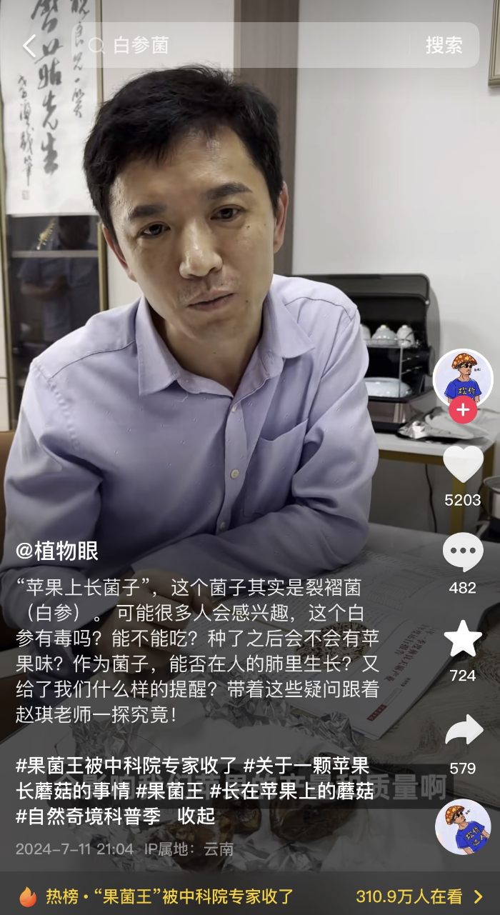 將蘋果長蘑菇跟網(wǎng)友長知識(shí)連接起來的,是涉事科研人員有料且有趣的科普。他們來得正是時(shí)候的科普,讓此事在“長菌蘋果”自帶的獵奇色彩和“千里求菌”的戲劇性之外,多了些社會(huì)價(jià)值:在他們順勢科普前,“長菌蘋果”留給網(wǎng)友的就是個(gè)“果菌王”的網(wǎng)梗;在他們展開科普后,“長菌蘋果”讓很多網(wǎng)友頭一次知道了“裂褶菌(又叫白參)”的存在。