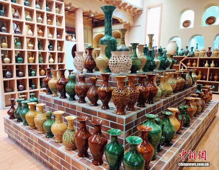 1月10日,新疆“土陶村”展出的精美土陶制品。 賈志鵬 攝