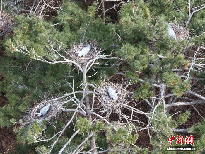 中新網(wǎng)呂梁3月30日電 (范麗芳 郝鵬飛)連日來,中國各地氣溫回升。山西呂梁山腹地的方山縣積翠鎮(zhèn)劉家莊村,春風拂過青山,草木吐露新芽,數(shù)十只蒼鷺如期遷徙歸巢,在村畔的高大楊樹上筑巢穩(wěn)窩,進入孵蛋繁育期。