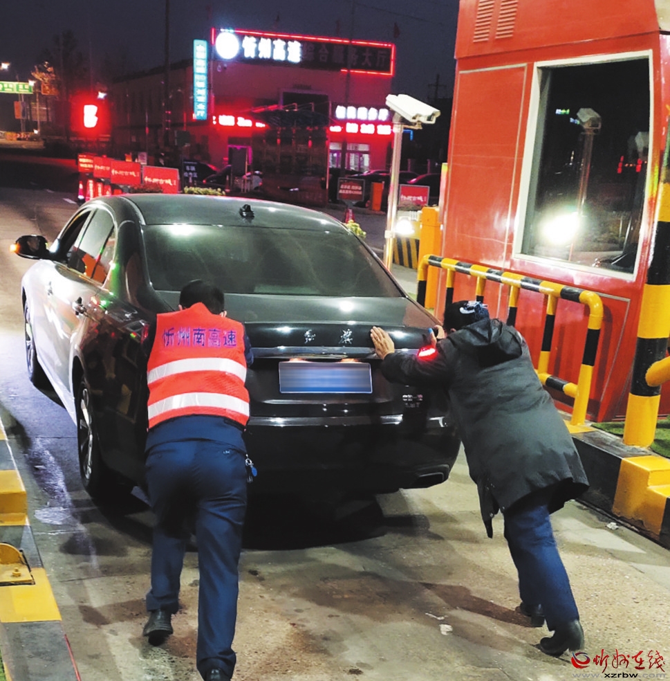 1月3日,南高速忻州收費(fèi)站出口駛?cè)胍惠v黑色紅旗小客車,在起步離開時車輛突發(fā)故障無法正常駛出車道。值班班長得知后在安慰司乘人員情緒的同時,立即組織工作人員一起將車推出收費(fèi)車道停放至安全區(qū)域,并擺放好隔離墩,防止事故發(fā)生,同時積極為司機(jī)聯(lián)系附近修理廠,安排維修人員前來維修。( 李瑞軍 莊新華 攝影報道)