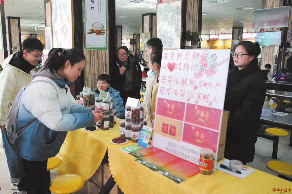 “以購(gòu)代捐”活動(dòng)改變了以往的捐贈(zèng)模式,讓定點(diǎn)幫扶村的產(chǎn)品變成了商品,有效解決了農(nóng)產(chǎn)品銷路問題,既激發(fā)了農(nóng)民群眾努力生產(chǎn)、勤勞致富的積極性,又拉近了廣大師生與農(nóng)民的距離,形成了“我勤勞、我致富”“我參與、我幸福”的良好氛圍。 (武大力)