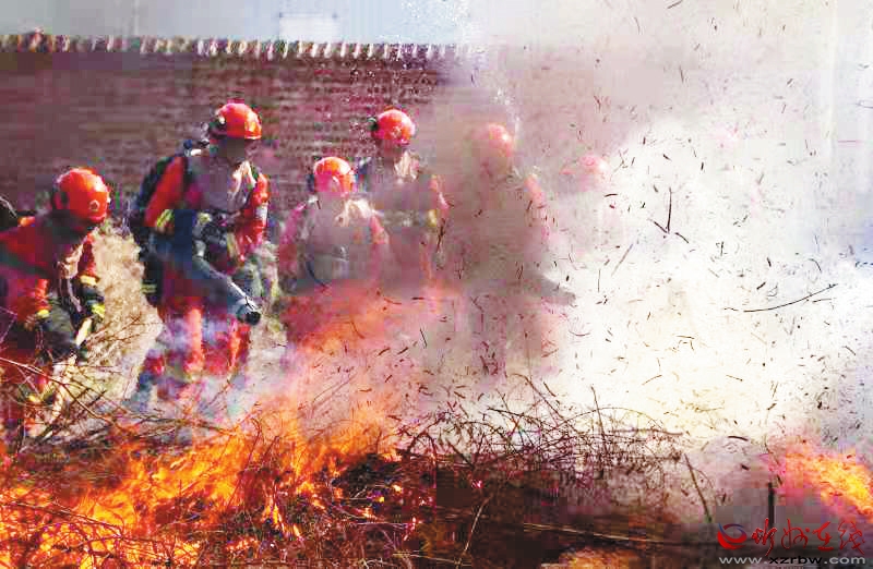 4月14日,新疆森林消防總隊山西駐防隊伍在忻府區(qū)高城鄉(xiāng)駐地,以轄區(qū)發(fā)生森林火災為模擬場景,組織人員開展實戰(zhàn)滅火演練,進一步提升隊伍戰(zhàn)斗能力。 (許寧寧 攝)