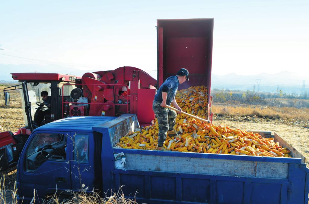 五臺縣東冶鎮(zhèn)北一村積極推進土地確權(quán)流轉(zhuǎn),使外出村民棄耕和管理不善的土地向種田能手集中。村民王春明流轉(zhuǎn)土地800畝,并購置了大型農(nóng)機具,進行科學種植,實現(xiàn)了增收致富。圖為王春明利用收割機搶收玉米,保證顆粒歸倉。 (王金龍 攝)