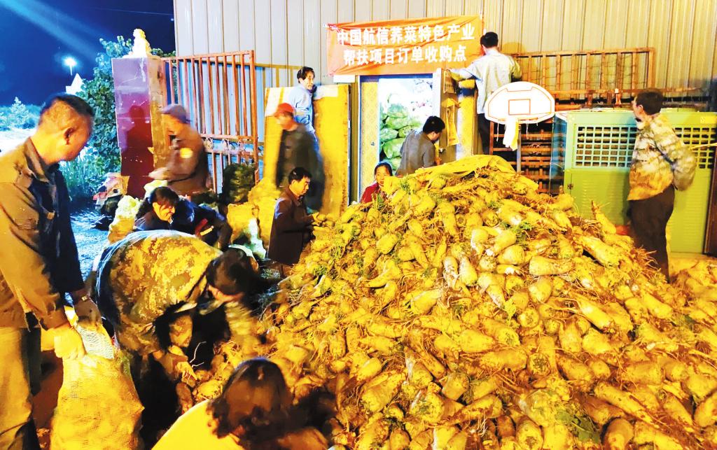 11月19日,神池縣西嶺村芥菜收購點一派繁忙景象。今年年初,在神池縣開展幫扶工作的中國航信集團領(lǐng)導調(diào)研了解到,地處管涔山國家生態(tài)林保護區(qū)的西嶺村芥菜種植收益高,決定出資在西嶺村打造華北海拔最高的蔬菜種植基地。他們扶持該村成立了芥菜種植專業(yè)合作社,聯(lián)系加工企業(yè)與農(nóng)民簽訂訂單收購協(xié)議,并提供技術(shù)支持和種植補貼,還給種菜戶購買了種植保險。今年西嶺村的1000畝芥菜獲得大豐收,畝產(chǎn)達到6000斤,全村157戶農(nóng)戶戶均增收1萬元,真正把小芥菜做成了農(nóng)民致富的大產(chǎn)業(yè)。(鄭志東 攝)