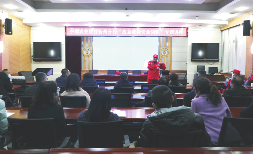 為進(jìn)一步牢固樹(shù)立“以人為本,關(guān)愛(ài)生命”的思想,堅(jiān)持“安全第一、預(yù)防為主、警鐘長(zhǎng)鳴、常抓不懈”的安全工作方針,增強(qiáng)員工的安全防范意識(shí),提高整體應(yīng)急救援處置能力和安全應(yīng)變能力,近日,農(nóng)行忻州分行組織開(kāi)展了應(yīng)急救援安全知識(shí)講座。(喬 敏 攝)