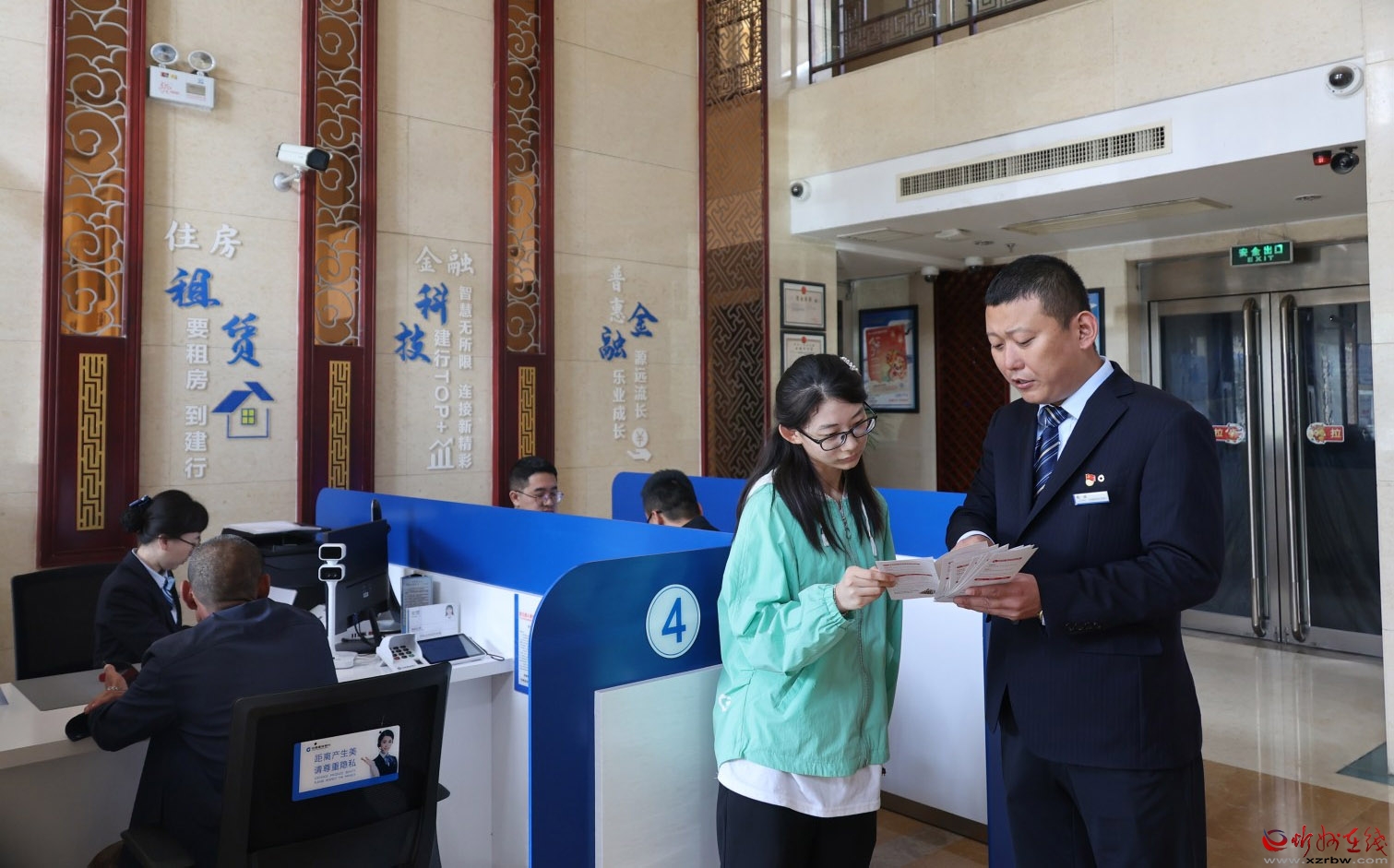 建行五臺山風景區(qū)支行的工作人員正熱情地為客戶進行業(yè)務(wù)宣傳。在營業(yè)大廳里,該行員工為客戶耐心細致地講解各項金融業(yè)務(wù)的特點和優(yōu)勢,從專業(yè)的角度為客戶分析不同業(yè)務(wù)的適用性,以滿足客戶多樣化的需求,讓客戶在輕松的氛圍中了解金融產(chǎn)品,感受建行服務(wù)的貼心與溫暖。(宮清華攝)