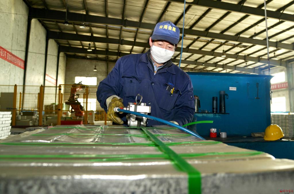五臺云海鎂業(yè)工人正在打包產(chǎn)品。 張存良 攝