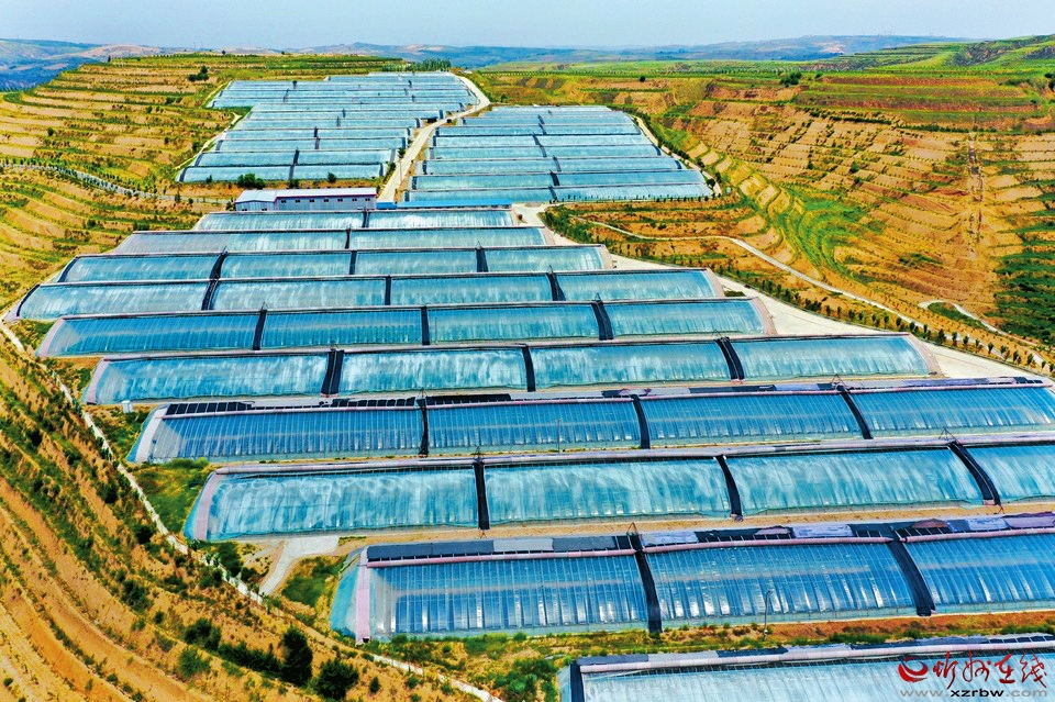 峁梁之間,溝壑縱橫。下了高速,路隨峁轉(zhuǎn),快到榆嶺窊,車窗外的風(fēng)景也變了,密集閃過一排排人造林。上峁放眼,溝梁之間,成片的日光溫室大棚宛如湖泊,在冬日暖陽下反射出粼粼波光。大棚之上,這邊一排排白墻灰瓦是別墅群,那邊人才公寓緊挨著老年公寓,飄揚(yáng)著鮮艷國(guó)旗的地方是榆嶺窊村黨群服務(wù)中心。