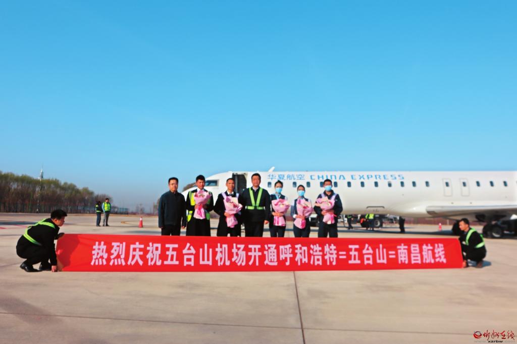 南昌-五臺山-呼和浩特航線成功首航。 本報記者 張志遠(yuǎn)攝