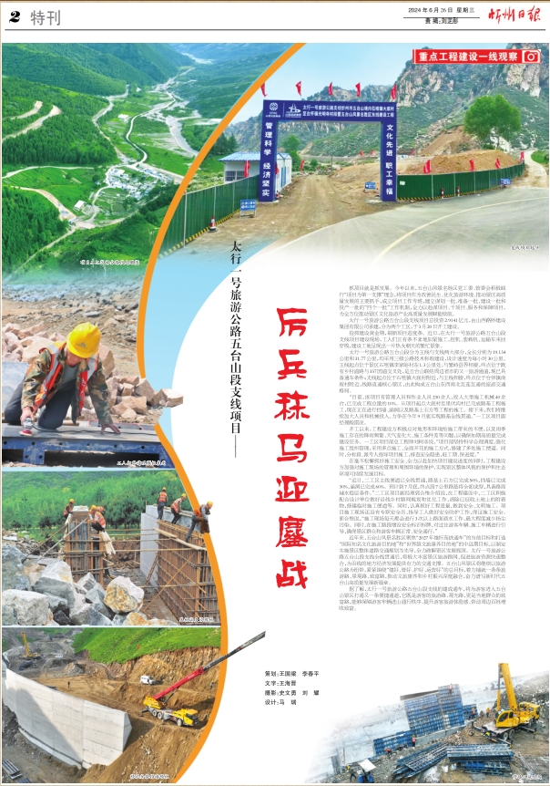 搶抓建設(shè)黃金期,刷新項(xiàng)目進(jìn)度條。近日,在太行一號(hào)旅游公路五臺(tái)山段支線項(xiàng)目建設(shè)現(xiàn)場,工人們正有條不紊地加緊施工,挖機(jī)、裝載機(jī)、運(yùn)輸車來回穿梭,建設(shè)工地呈現(xiàn)出一片熱火朝天的繁忙景象。