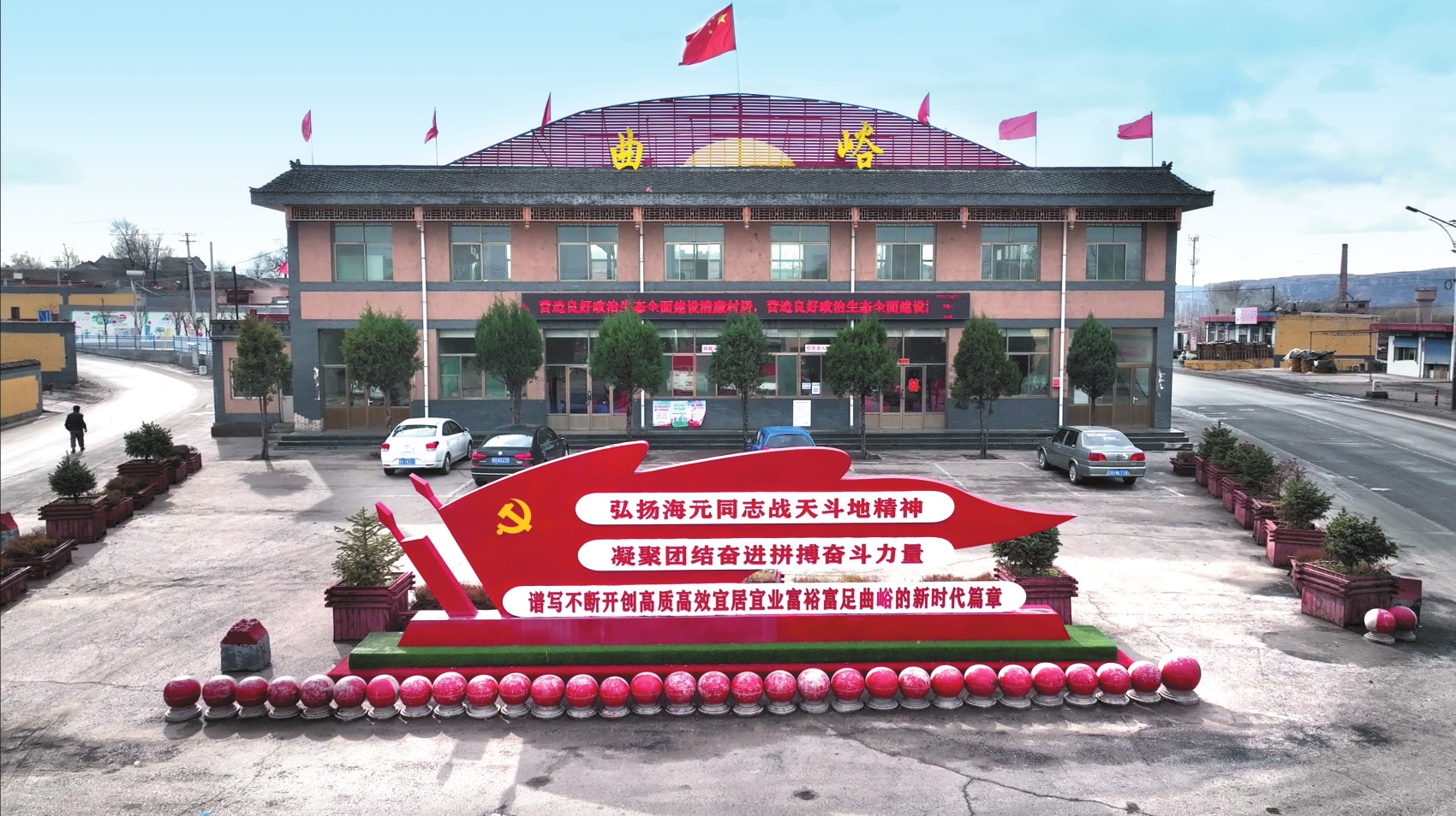 微風(fēng)拂過層層梯田,從歷史走來的紀(jì)念館與新時代的村黨支部辦公樓隔空相對,中間廣場上飄揚(yáng)的紅旗獵獵作響。這面旗幟見證了一場跨越時空的接力,也傳頌著永不褪色的傳奇——信念如何種進(jìn)黃土,長出希望。