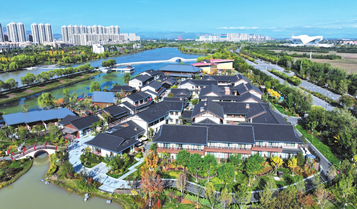 云中河景區(qū)清涼灣溫泉康養(yǎng)小鎮(zhèn)。記者張存良攝
