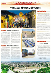 兩年來,晉中市和平遙縣牢記領(lǐng)袖囑托,全力推動“遺產(chǎn)保護(hù)首善地、國際旅游目的地、晉商文化窗口地、特色產(chǎn)品展示地”建設(shè),在保護(hù)與傳承中交出了嶄新的答卷。