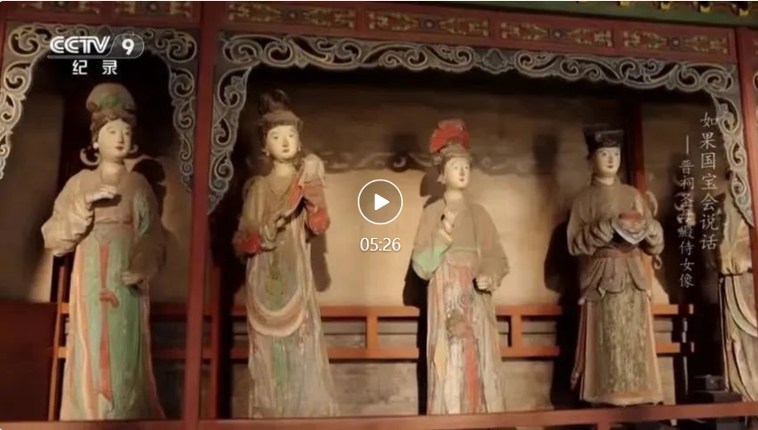 “一千年前,她搬進(jìn)了一座大殿,進(jìn)深六間,面闊七間,是她不曾想象的奢華,還有望到脖子酸的牌匾,懸甕山麓,晉水發(fā)源,是祭祀西周晉國第一任諸侯姬虞的祠堂——晉祠?!痹凇度绻麌鴮殨f話》第四季第13集中,全景呈現(xiàn)了晉祠圣母殿侍女像的文物故事。