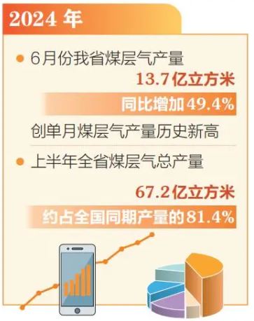 7月23日,記者從山西省統(tǒng)計局獲悉,今年6月份我省煤層氣產(chǎn)量13.7億立方米,同比增加49.4%,創(chuàng)單月煤層氣產(chǎn)量歷史新高。今年上半年全省煤層氣總產(chǎn)量67.2億立方米,約占全國同期產(chǎn)量的81.4%。